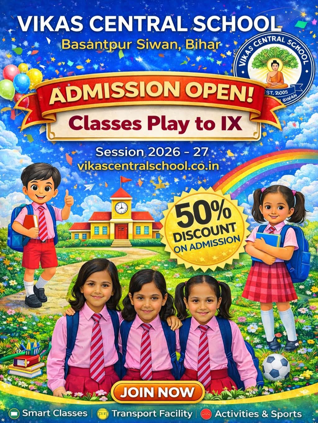 Vikas Central School is a premier educational institution committed to providing quality education in a safe, disciplined, and nurturing environment. Our mission is to empower students with knowledge, skills, and values that prepare them for academic success and responsible citizenship.
